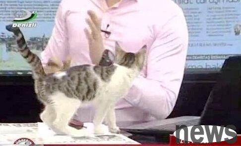 Because such a cute little animal suddenly appeared, the originally serious news broadcast became cute. The male anchor was completely immersed in the live news broadcast, broadcasting the news seriously and excitingly, and completely did not notice the cute little head popping up under the anchor's stage.