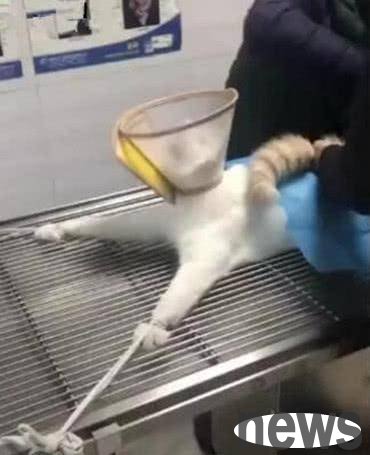 But cats also have troubles, when they are in heat. The cats were very irrational at that time, and they like to scratch the door if they are anxious! In order to help the cat get rid of this trouble, the owner took it for sterilization. Cats understand human psychology very well and they know how their owners want to do it. At the beginning, it was very annoyed and struggled constantly. The people in the pet hospital had no choice but to tie it up and fix its limbs on four corners. After the cat was tied up, it still couldn't help but struggle.